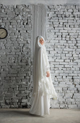 A wide, flowy double-cloche veil from Mayazeen, combining elegance and comfort.