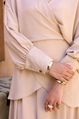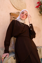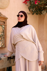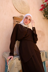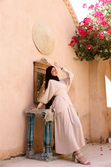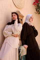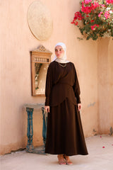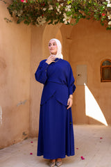 A two-piece set featuring a wide, comfortable cloche dress and an elegant top for a complete look. Perfect for university or daily outings.