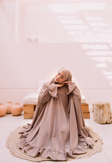 A refined full set designed with a French cape and cape, combining elegance and comfort for prayer moments at home or in the mosque.